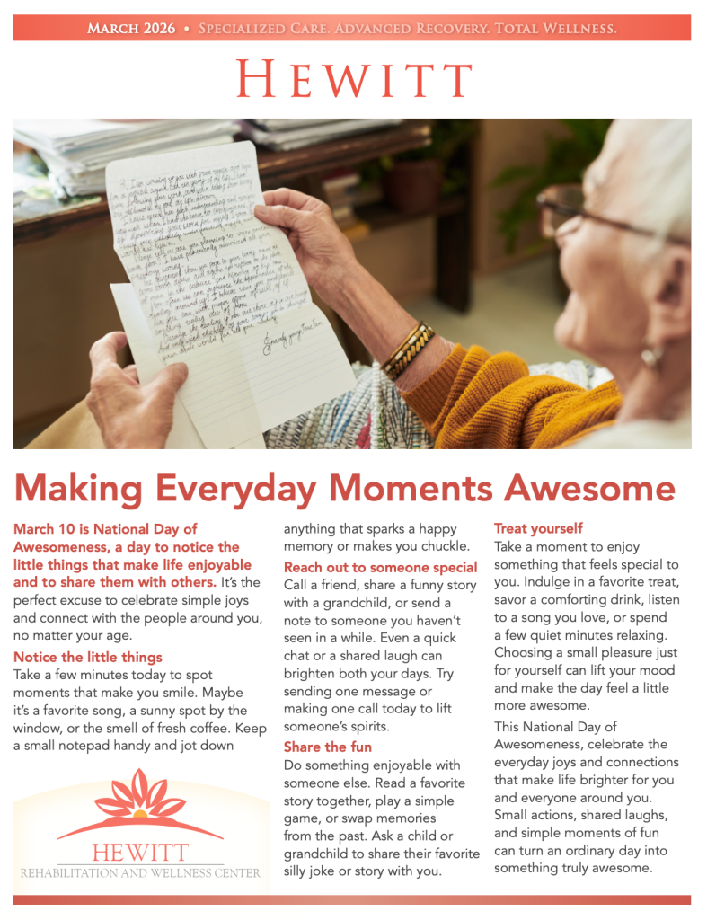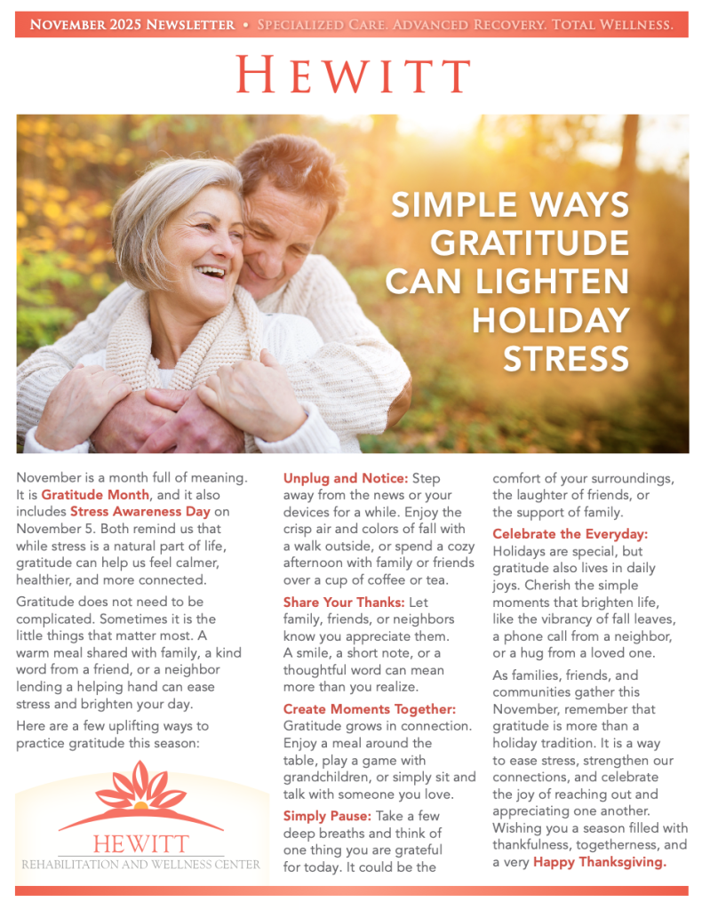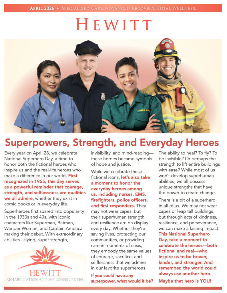 See the latest news and happenings at Hewitt Rehabilitation & Wellness Center.